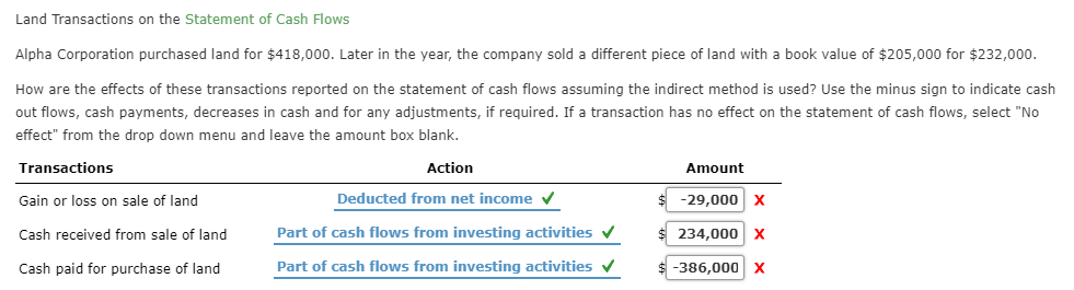Solved Land Transactions On The Statement Of Cash Flows V Chegg Com