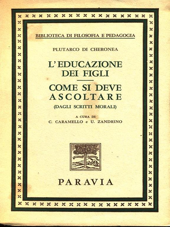 L Educazione Dei Figli Come Si Deve Ascoltare Plutarco Libro Usato Paravia Biblioteca Di Filosofia E Pedagogia Ibs
