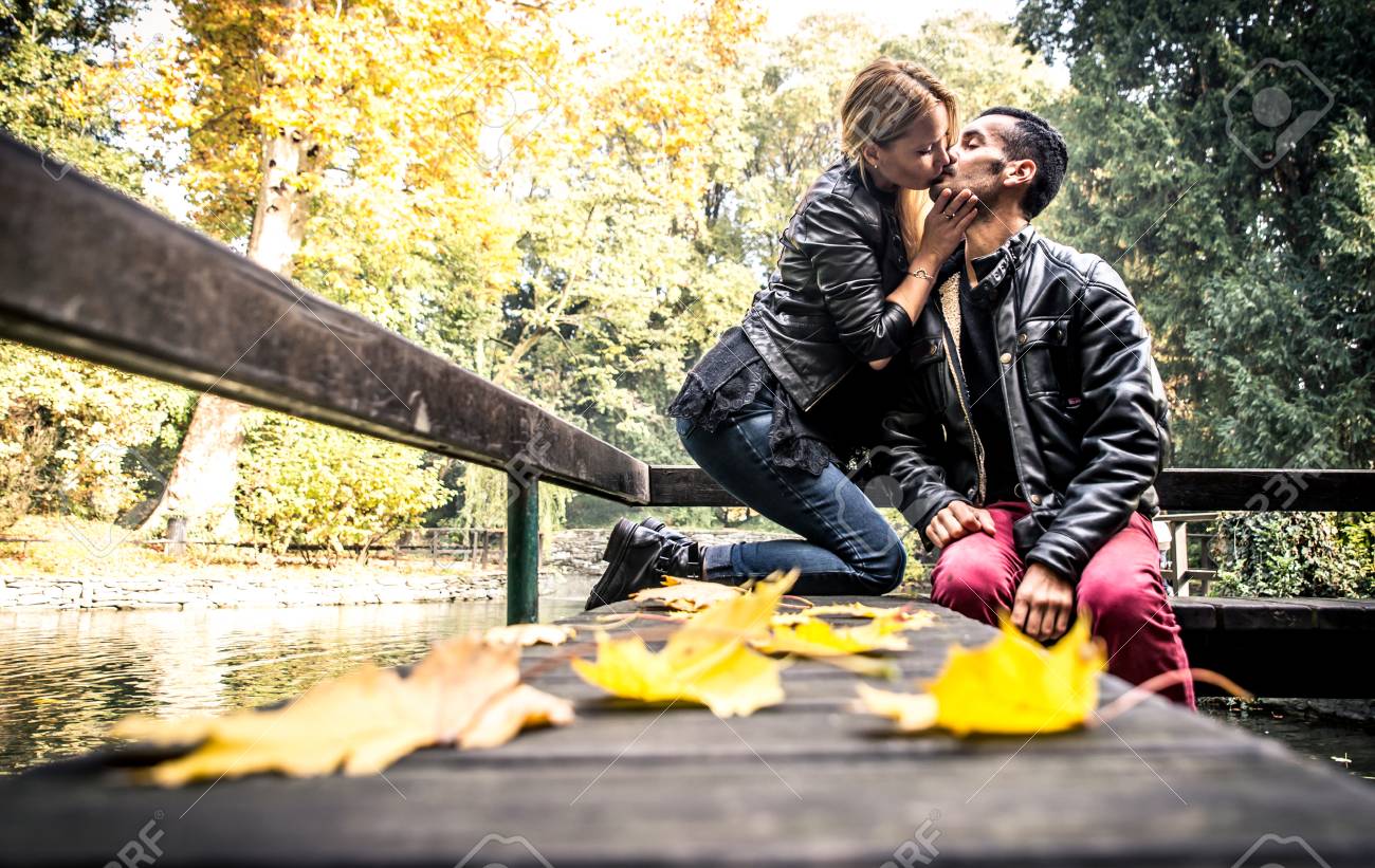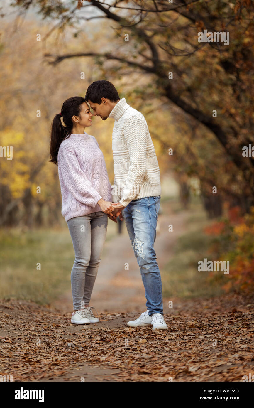 Couple In Love Has Happy Moments And Enjoying Beautiful Autumn Day In Park Stock Photo Alamy