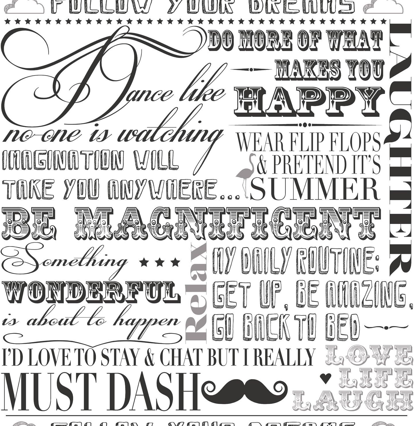 Wallpaper Rolls Sheets 5 Rolls Quotes Words Follow Your Dreams Black White Wallpaper Metallic Silver Home Furniture Diy Breadcrumbs Ie