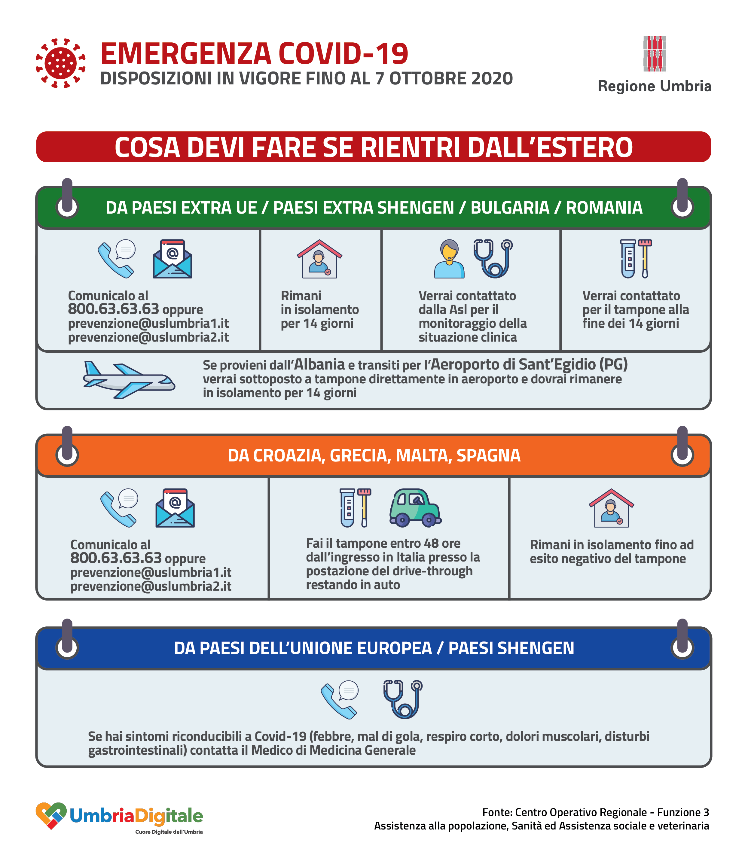 Emergenza Covid 19 Disposizioni Regionali Per I Rientri Dall Estero In Vigore Fino Al Prossimo 7 Ottobre Usl Umbria 2