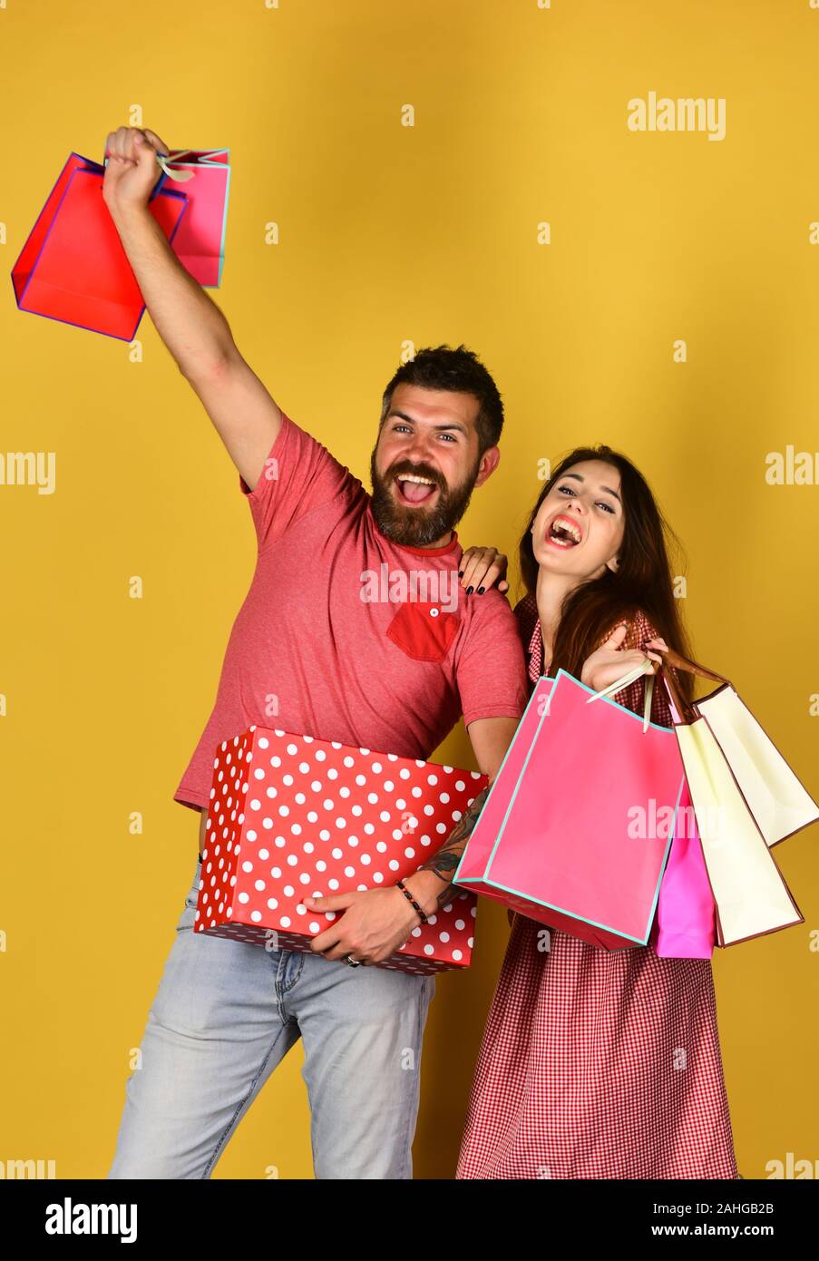 Felice Coppia Giovane A Passeggiare E A Fare Shopping In Citta A Molla Bella L Uomo E La Donna A Piedi Lungo La Strada Con Le Borse Della Spesa Foto Stock Alamy