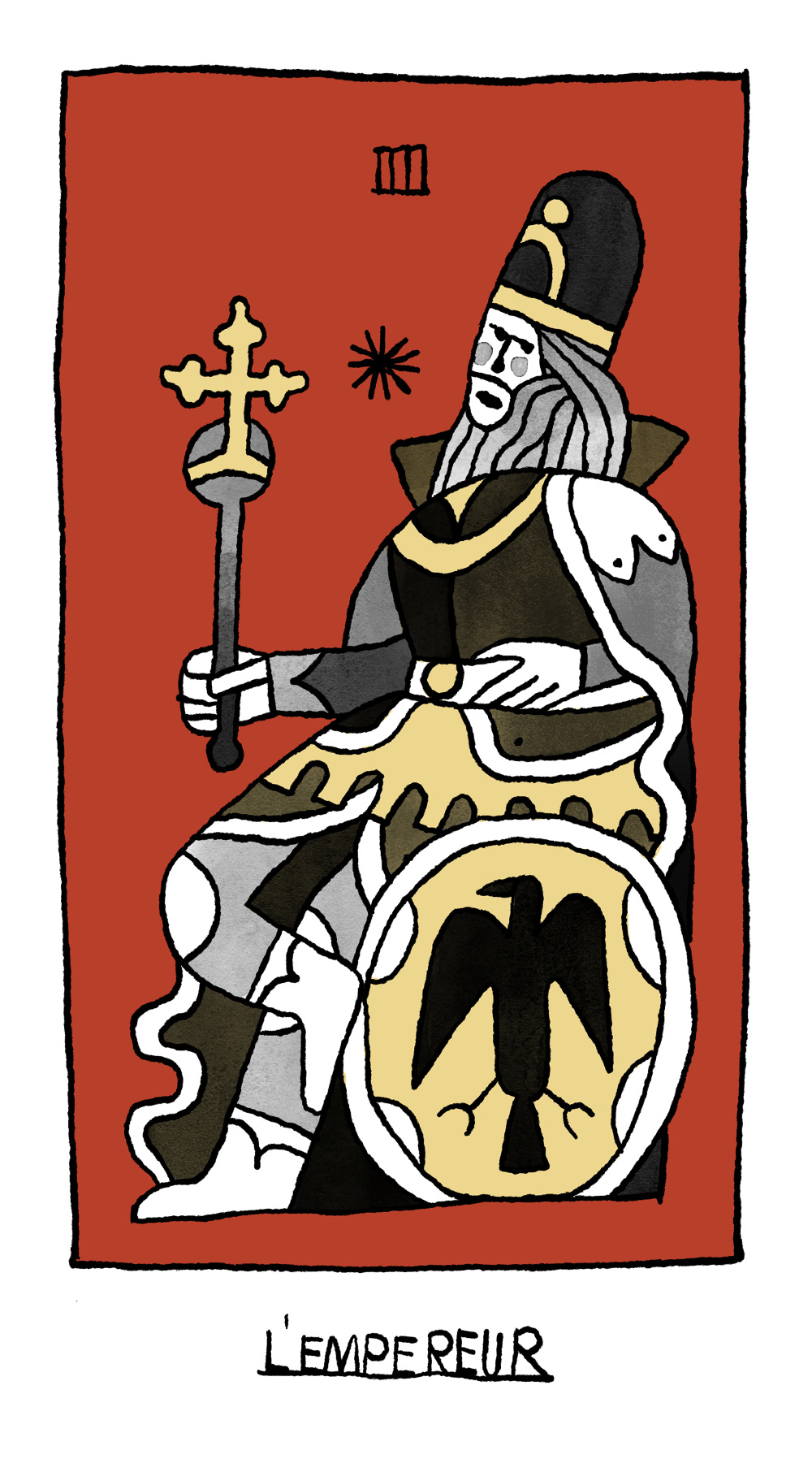 The Emperor L’Empereur Marseille takes number 4, combined with stability like the shape of a square, which is a symbol of material guarantee The four legs of the table and the altar of the church also has a connection with number 4 The number 4 is unlikely to collapse unless there is a major revolution. L'Empereur (The Emperor) The Marseilles Tarot is an 18th century creation of obscure origins It predates the occult symbolism of the Rider Waite deck by roughly 0 years, giving the readings a unique and rustic flavor Many swear by this deck as the true oracle of the common man. L’ Empereur Arcane IIII – Jean Dodal Lyon c1701 L’enfant a grandi Entre onze et quatorze ans, le jouvenceau devait quitter le monde des femmes pour entrer dans celui des hommes S’il est noble, il devient page Sinon, il devient apprenti Le modèle est le même celui du père Après l’école maternelle, voici l’école.
