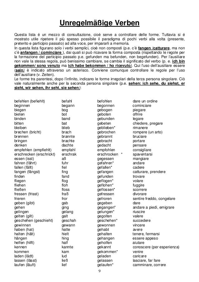Coniugazione Verbi Irregolari In Tedesco Viaggio In Germania