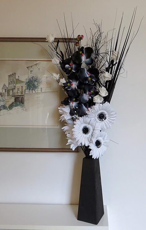 Di Produzione Inglese Black White Con Vaso In Legno Composto Da Fiori Secchi E Artificiali Alto 85 Cm Bouquet Unico Decorazioni Per Interni Vasi