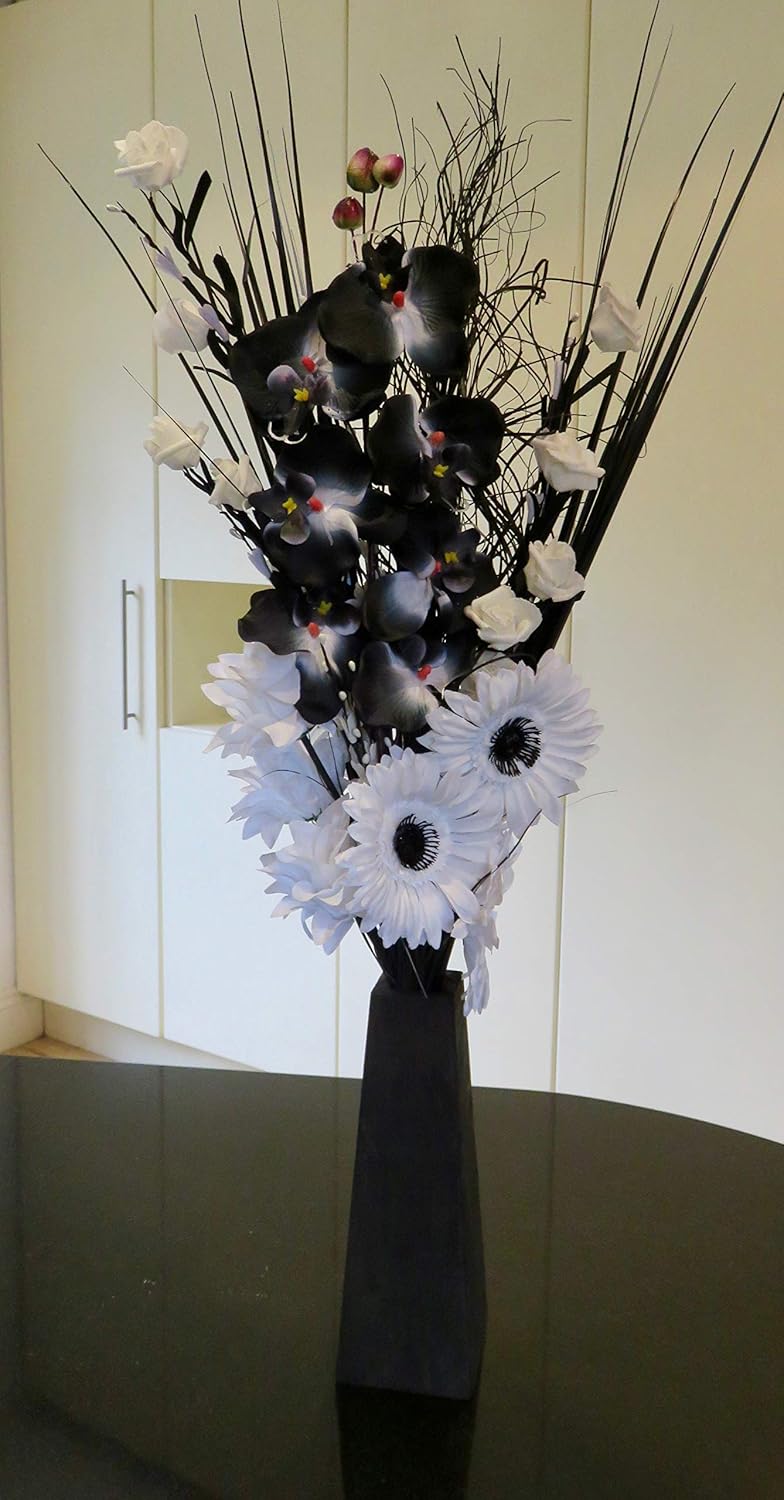 Bouquet Unico Composto Da Fiori Secchi E Artificiali Alto 85 Cm Con Vaso In Legno Di Produzione Inglese Black White Amazon It Casa E Cucina