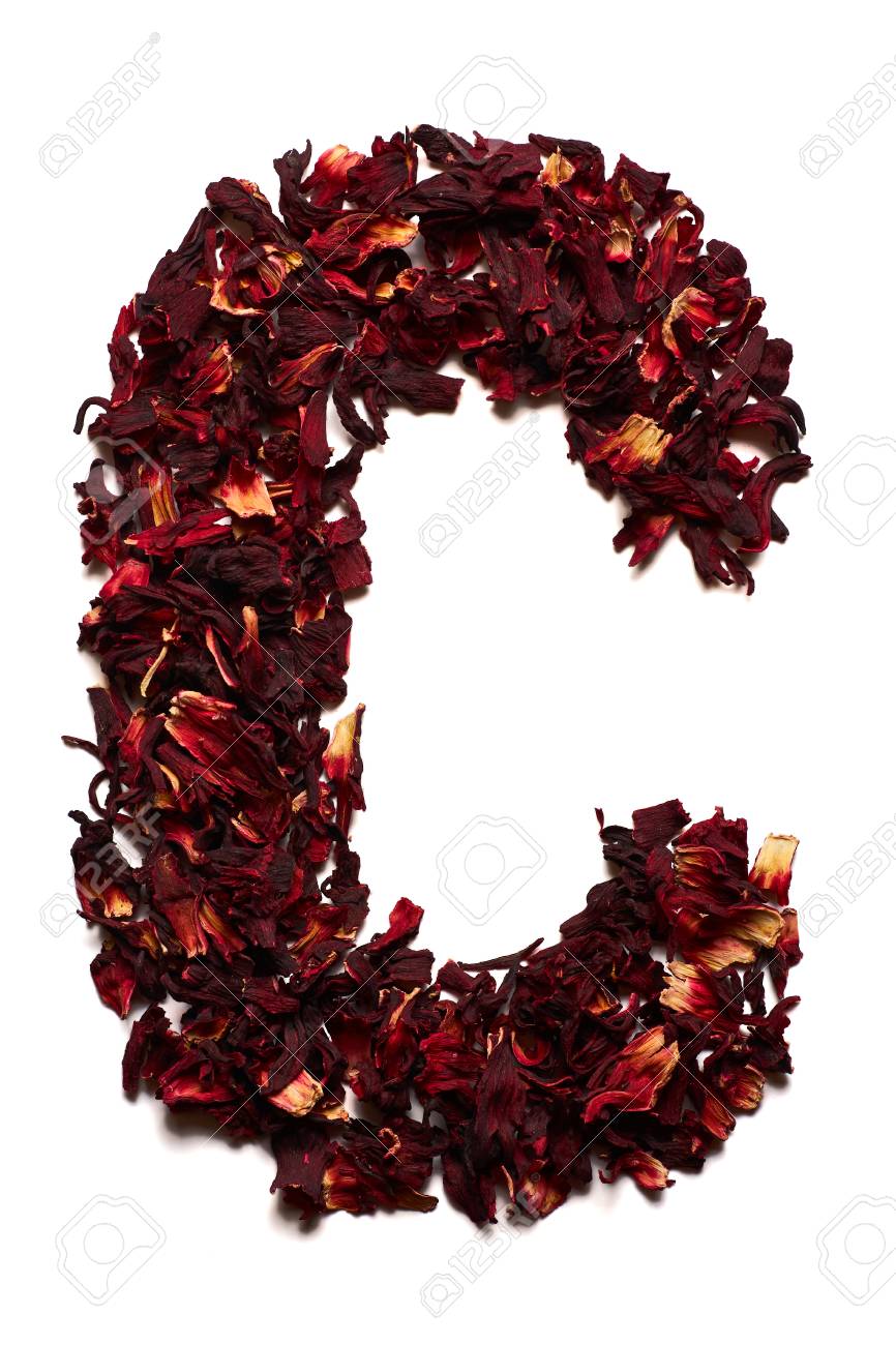 Immagini Stock Alfabeto Inglese Lettera C Da Fiori Secchi Di Te Di Ibisco Su Uno Sfondo Bianco Lettere Per Banner Pubblicita Menu Image
