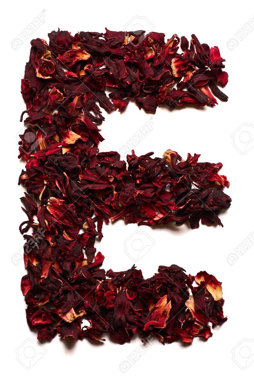 Immagini Stock Alfabeto Inglese Lettera E Da Fiori Secchi Di Te Di Ibisco Su Uno Sfondo Bianco Lettere Per Banner Pubblicita Menu Image