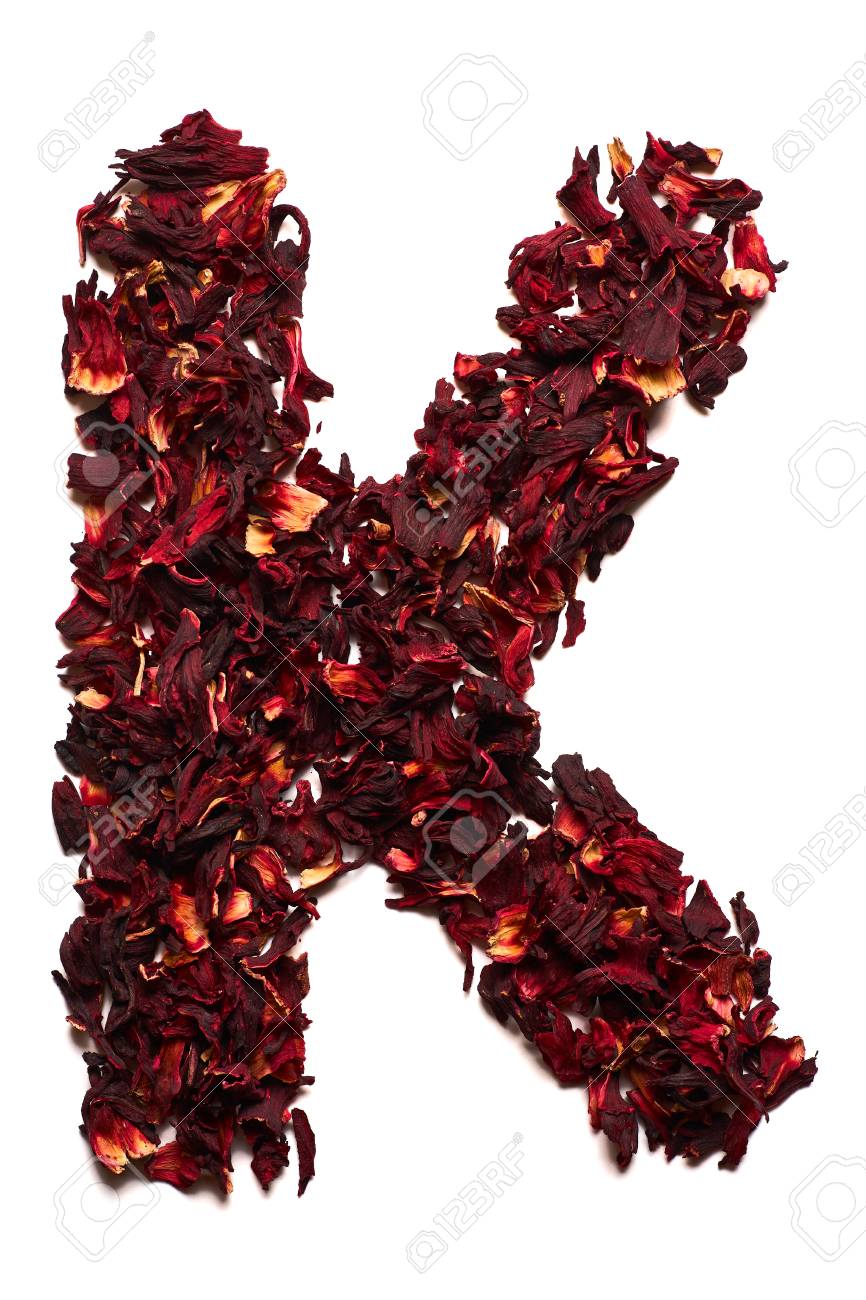 Immagini Stock Alfabeto Inglese Lettera K Da Fiori Secchi Di Te Di Ibisco Su Uno Sfondo Bianco Lettere Per Banner Pubblicita Menu Image