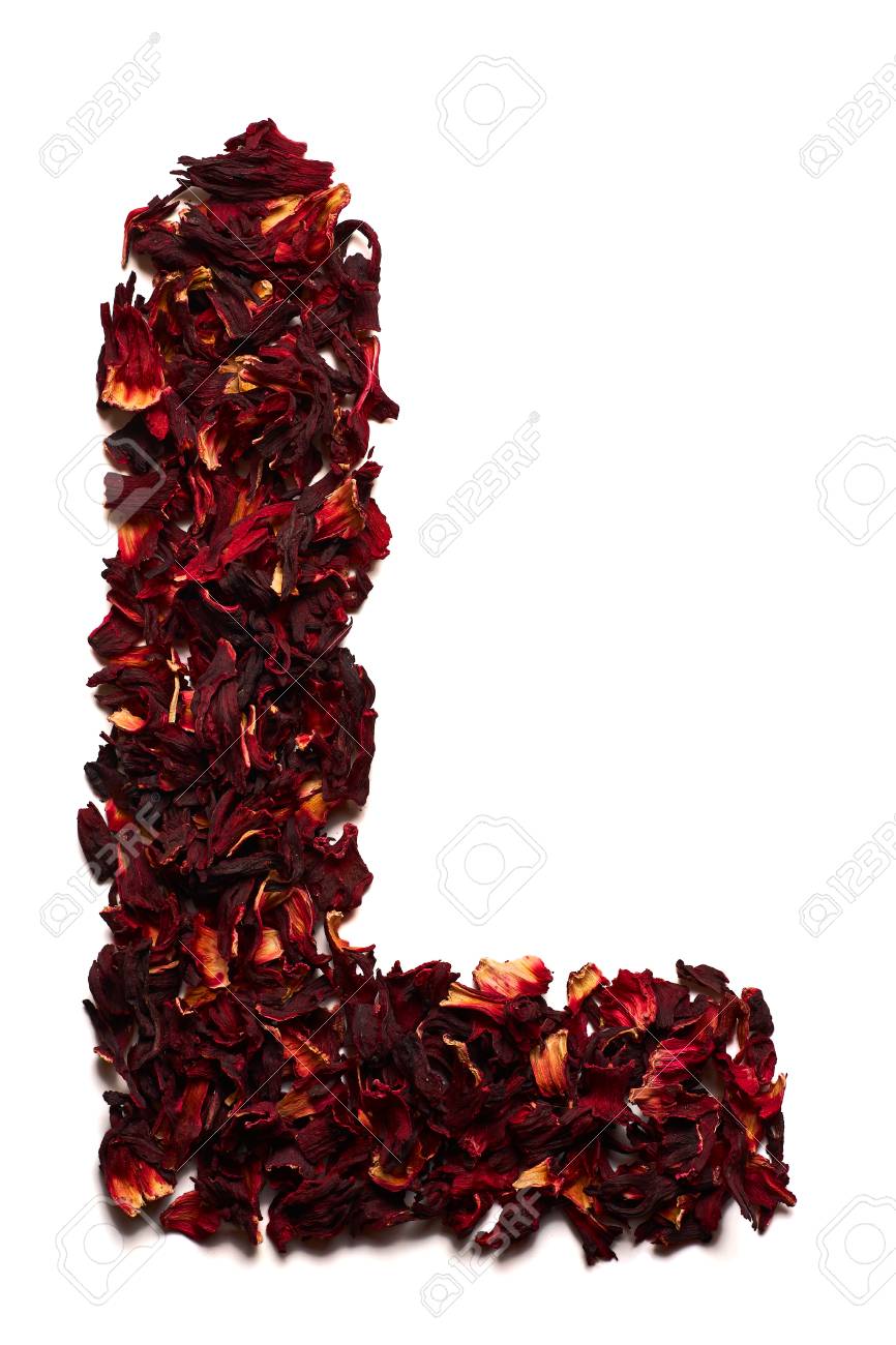Immagini Stock Alfabeto Inglese Lettera L Di Fiori Secchi Di Te Di Ibisco Su Uno Sfondo Bianco Lettere Per Banner Pubblicita Menu Image
