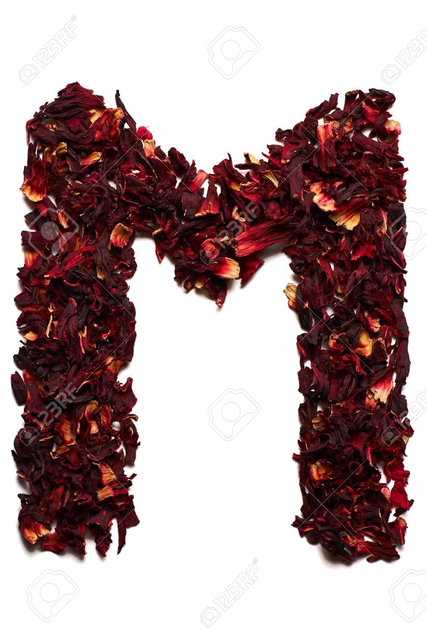 Immagini Stock Alfabeto Inglese Lettera M Da Fiori Secchi Di Te Di Ibisco Su Uno Sfondo Bianco Lettere Per Banner Pubblicita Menu Image