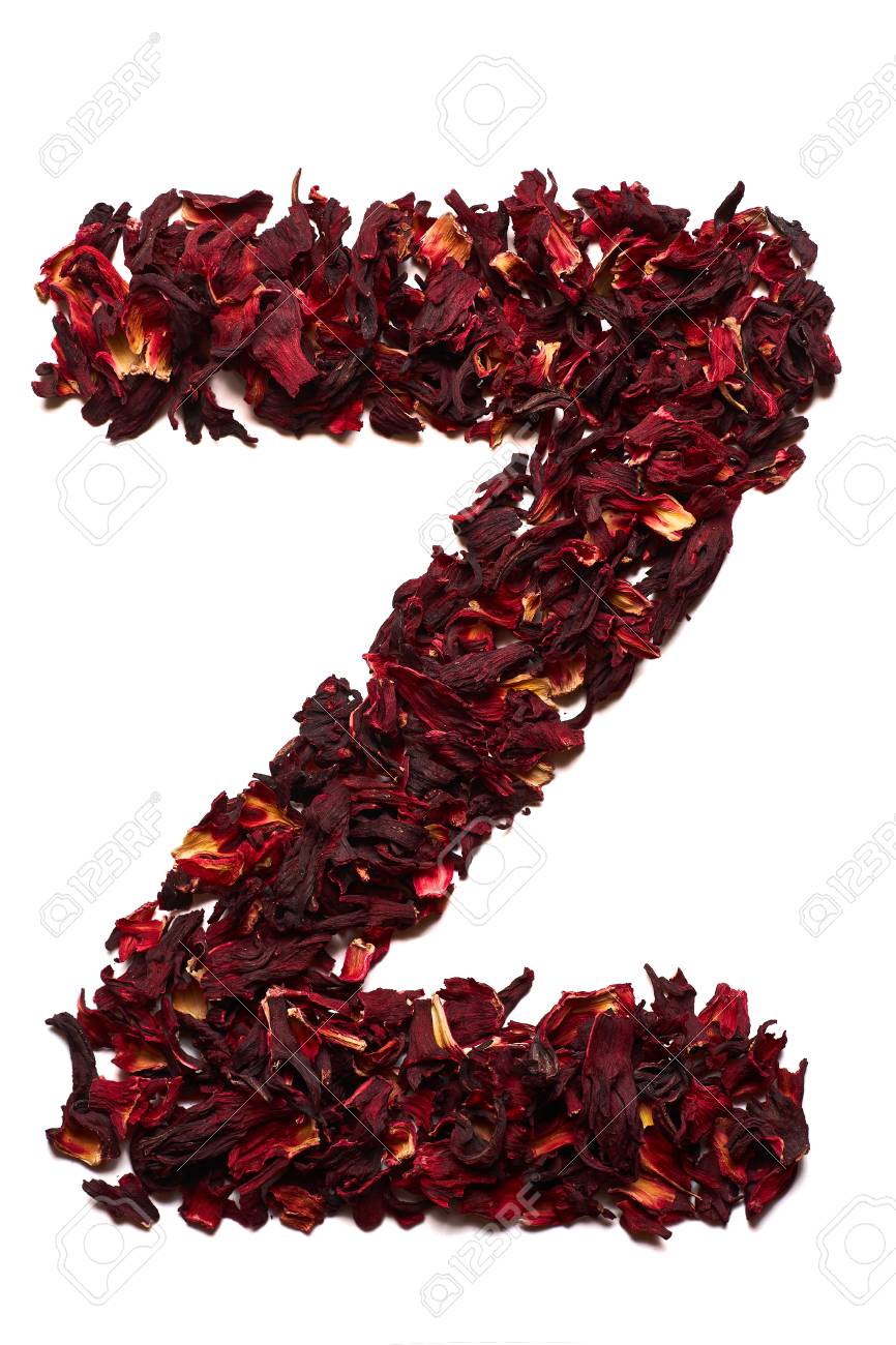 Immagini Stock Alfabeto Inglese Segni La Z Con Lettere Dai Fiori Secchi Del Te Dell Ibisco Su Un Fondo Bianco Lettere Per Banner Pubblicita Menu Image