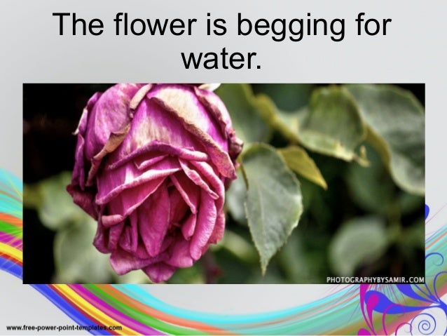 Water the soil of your plant before so that your plant does not consume all the water from the bottle first, letting the selfwatering method last longer Place the plastic bottle into a hole in the soil with the cap and about an inch or two of the water bottle peeking out Step 3 Fill up the water bottle. To prolong the life of freshcut flowers, florists recommend commercial flower preservatives Homemade vase solutions â using pennies, aspirin, vodka, sugar, 7UP or bleach â claim to be as. My flowers were begging for water personification The frogs talked to me at night personification Ripe tomatoes are pieces of heaven in my garden metaphor He ran like a train speeding down the track simile.