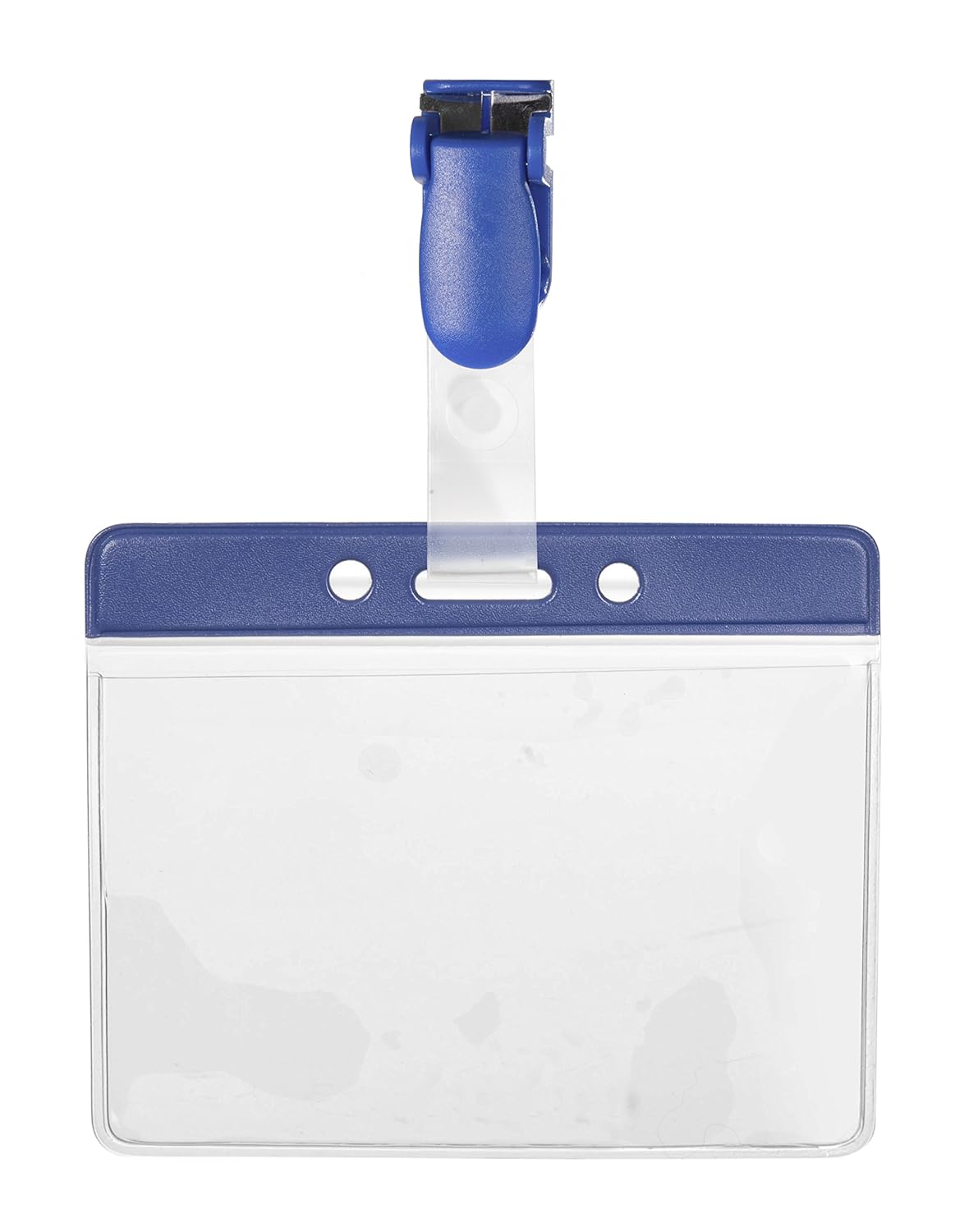 Karteo Porta Badge Porta Cartellino Involucro Protettivo In Polivinile Con Barre Di Colore Orizzontalmente E Clip Di Colore Blu Escuelasoulsurf Cl