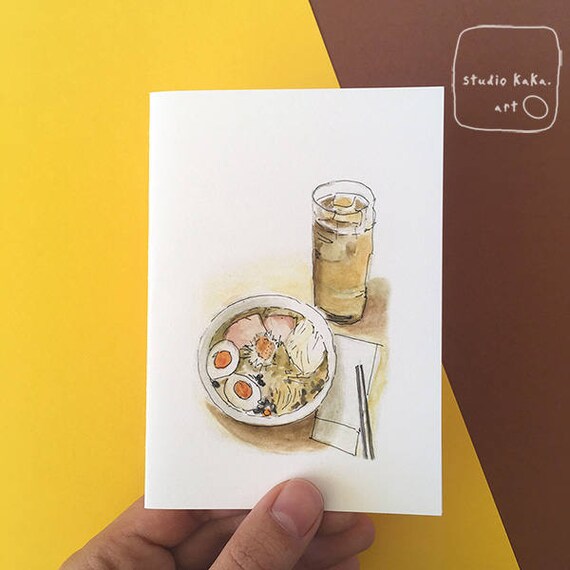 Food Ramen Noodle Illustration Card Hipster Art Foodie Etsy