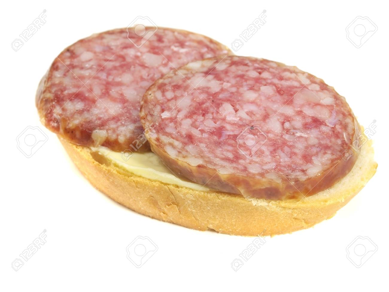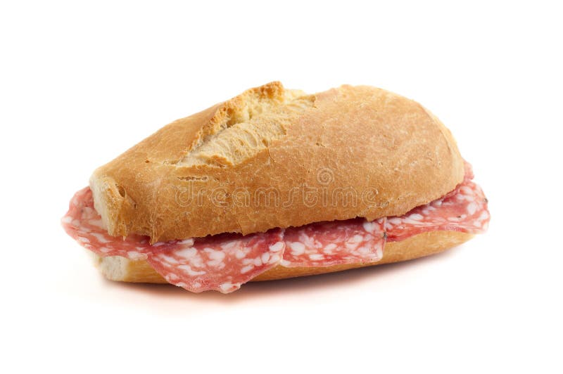 Immagini Stock Panino Con Salame Su Uno Sfondo Bianco Image