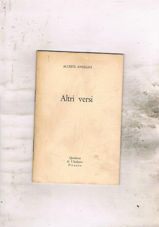 Altri Versi Poesie Alceste Angelini Libro Usato Quaderni De L Indiano S D Ibs
