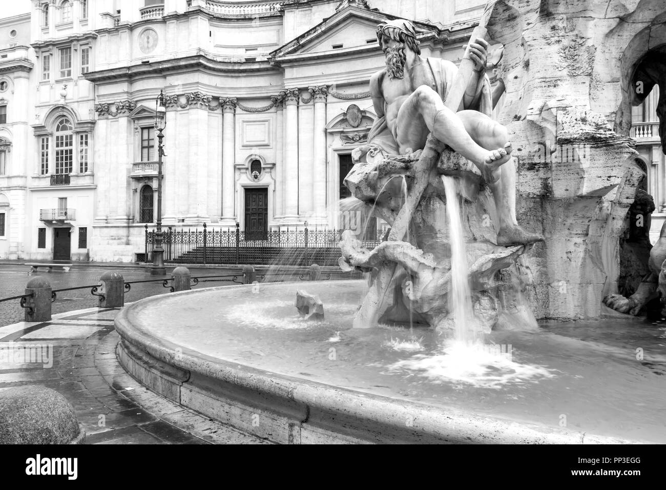 La Fotografia In Bianco E Nero Della Famosa Fontana Dei Quattro Fiumi 1651 Da Gian Lorenzo Bernini Su Piazza Navona A Roma L Italia Foto Stock Alamy
