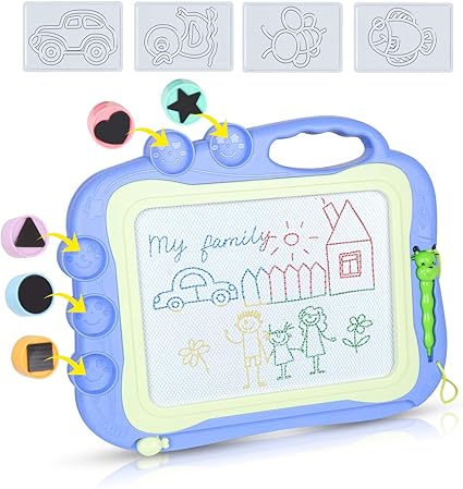 Dutison Lavagna Magnetica Per Bambini 4 Colori Tavola Da Disegno Cancellabile Lavagnetta Magica Con 5 Timbri Magnetici E 1 Penna 4 Modelli Di Disegno Blu Amazon It Giochi E Giocattoli