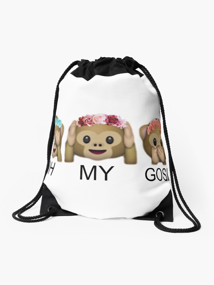 Oh My Gosh Flower Crown Tumblr Emoji Monkey Drawstring Bag By Returntoryland Redbubble