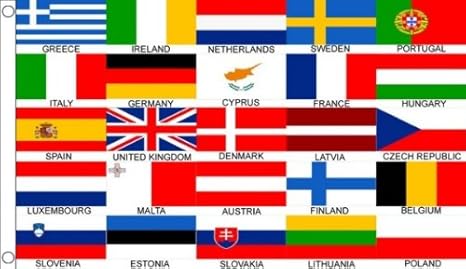 Flag Co Bandiera Delle Nazioni Europee 25 Paesi 100 Poliestere Ideale Per Scuole Commerci Club Decorazioni Eurovisiom Dimensioni Di 150 X 90 Cm Amazon It Sport E Tempo Libero
