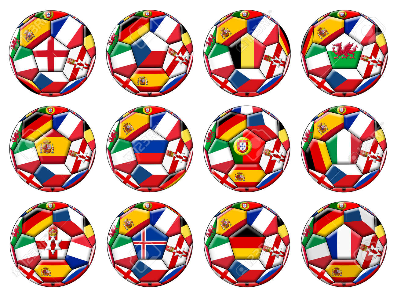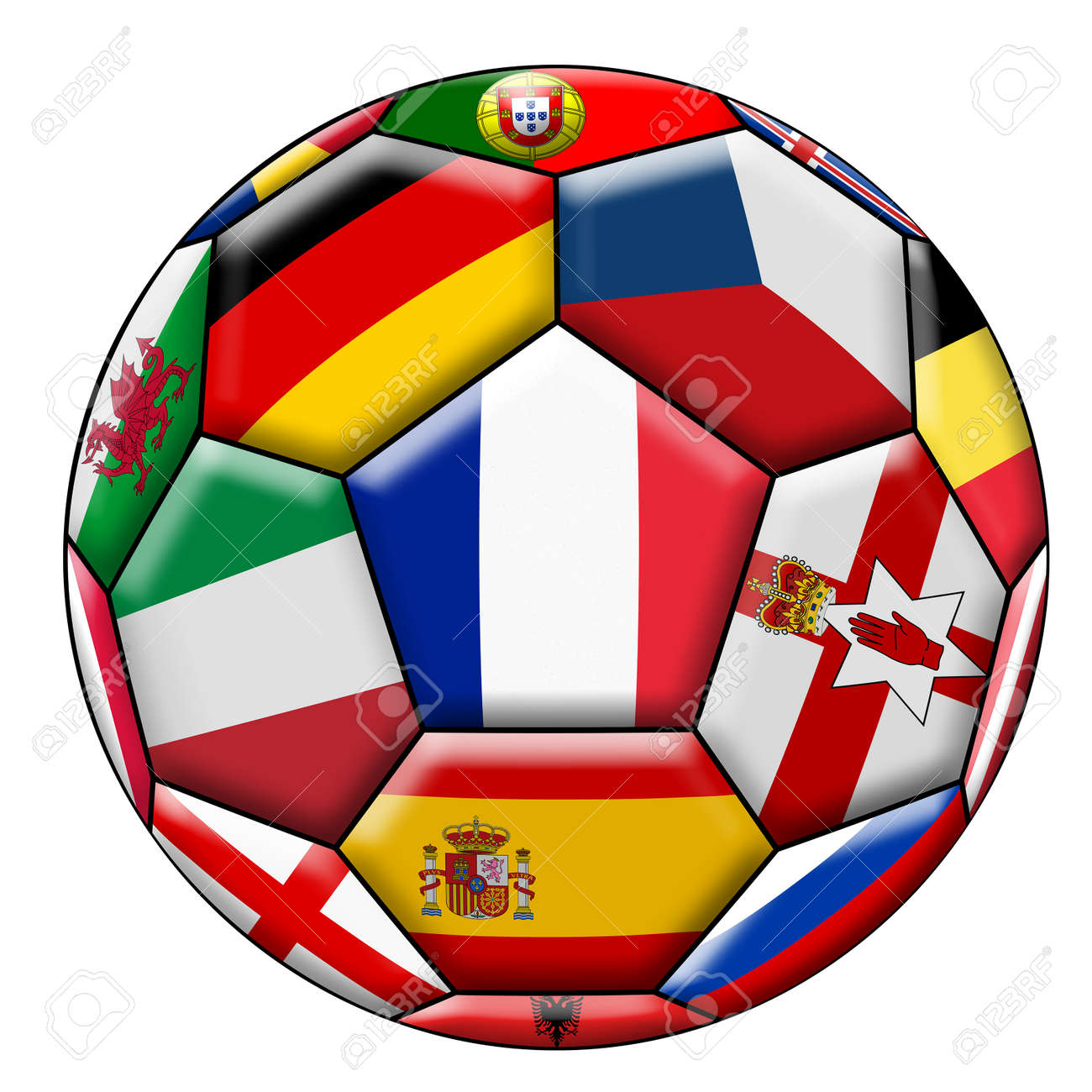 Immagini Stock Pallone Da Calcio Su Uno Sfondo Bianco Con Le Bandiere Dei Paesi Europei Image