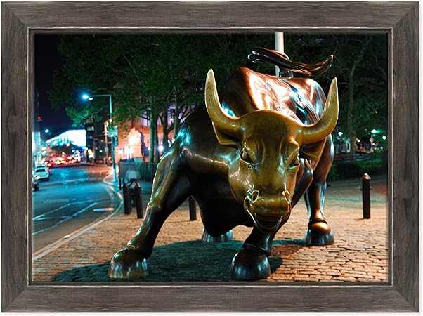 Quadro Su Tela Canvas Intelaiato Con Cornice Toro Wall Street New York City Finanza 70x100cm Stile Country Nero Shabby Cod 1481 Amazon It Casa E Cucina