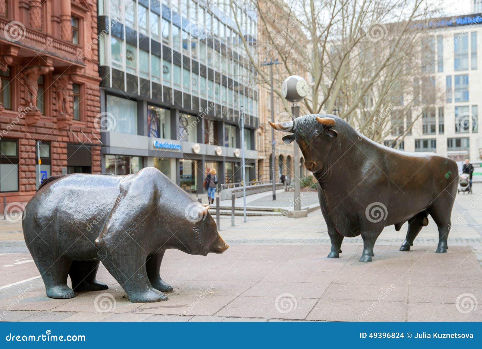 Il Ribassista E La Scultura Davanti Alla Borsa Valori Di Francoforte Germania Del Toro Fotografia Editoriale Immagine Di Bearish Bronzo