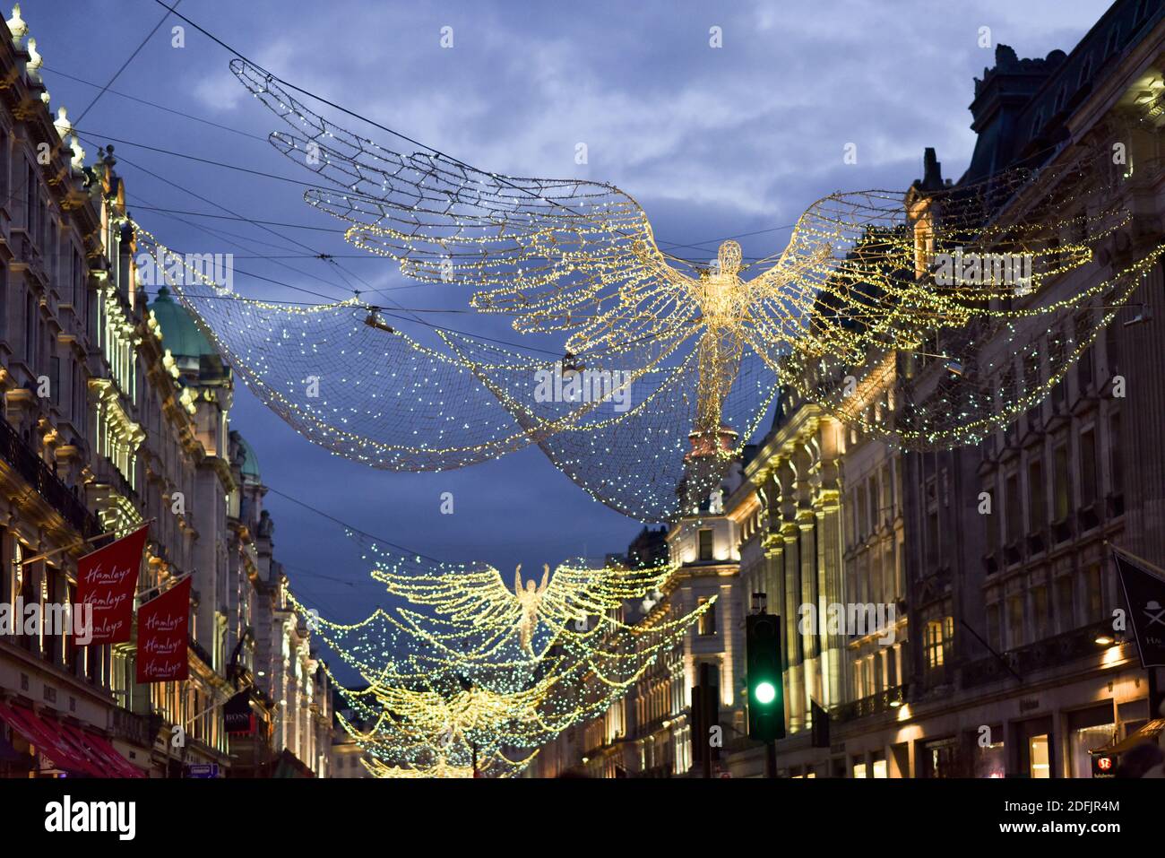Christmas Lights The Spirit Of Christmas Floating Angel Festive Period Glow Regent Street West End Westminster London W1b Stock Photo Alamy