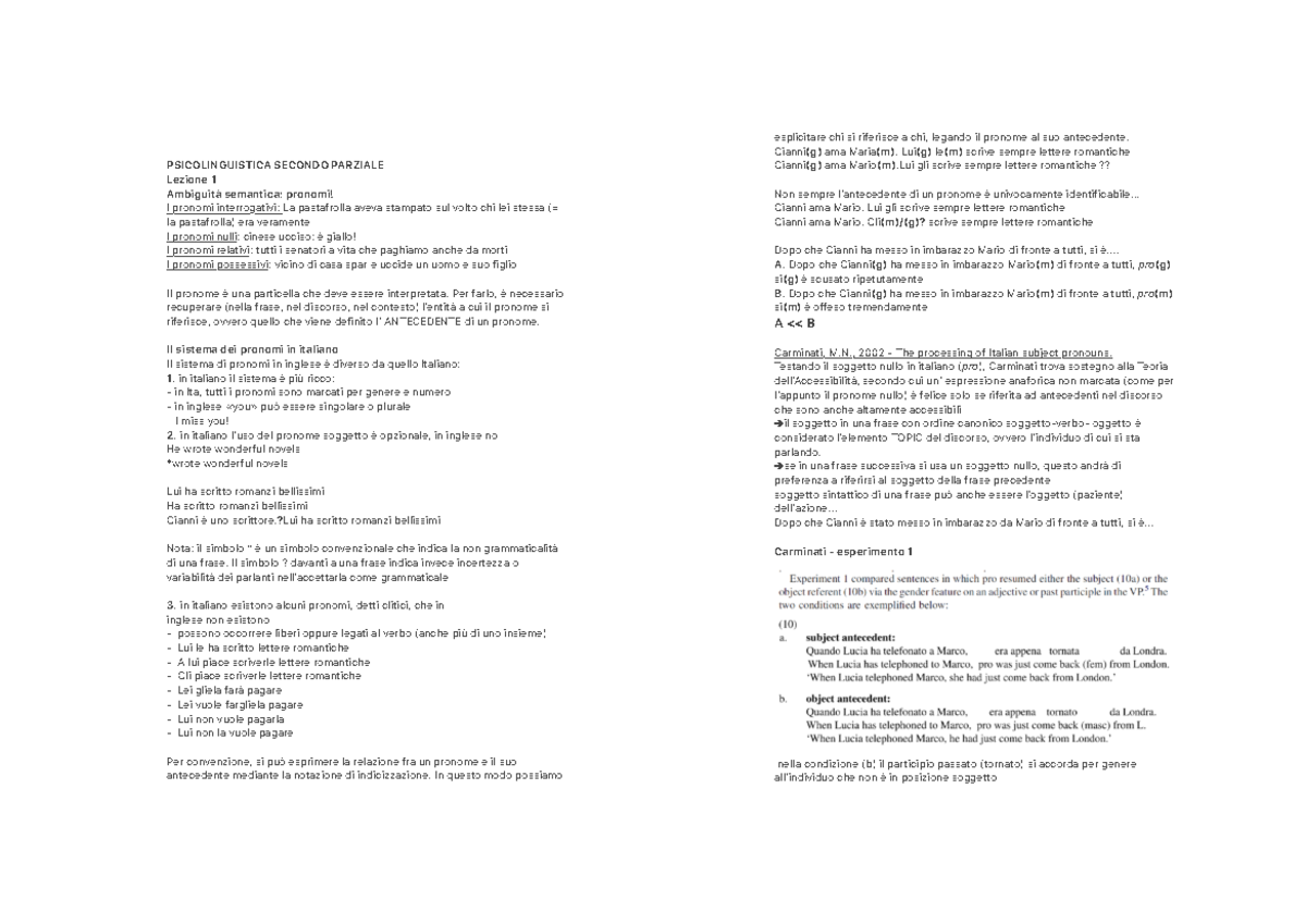 Secondo Parziale Psicolinguistica Studocu