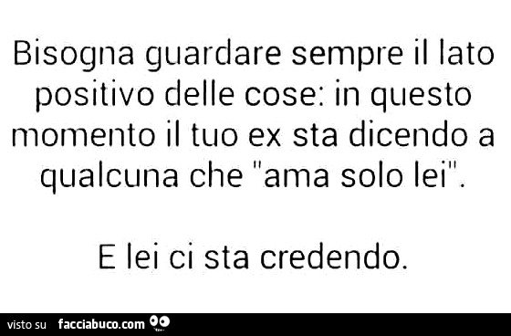 Bisogna Guardare Sempre Il Lato Positivo Delle Cose In Questo Momento Il Tuo Ex Facciabuco Com