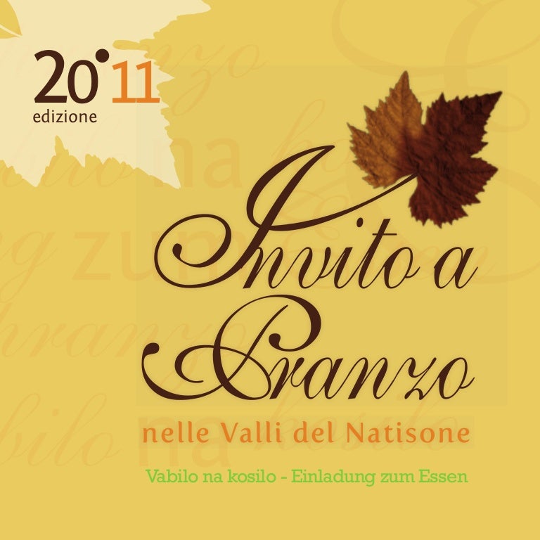 Le regole per gli invitati sono tutte quelle usanze di senso comune che dovrebbero essere seguite quando si partecipa a un evento o a una cena da quando arrivare a che cosa portare, da come comportarsi a come vestirsi, ecco ciò che l’etichetta consiglia L’invito Che sia recapitato via posta o attraverso mezzi più diretti, è sempre buona norma rispondere all’invito il prima. Invito a Pranzo, Pulfero 1,976 likes · 7 talking about this Invito a Pranzo è un'associazione che offre i piatti tipici locali di 15 ristoratori delle Valli del Natisone Venite ad assaporarli e. Uno dei modi più originali con cui le Valli del Natisone rendono omaggio all’autunno è la manifestazione “Invito a pranzo” il cui esordio risale al 19 I locali aderenti scelgono il menù da proporre attingendo alla tradizione culinaria locale senza tralasciare qualche elemento di innovazione.