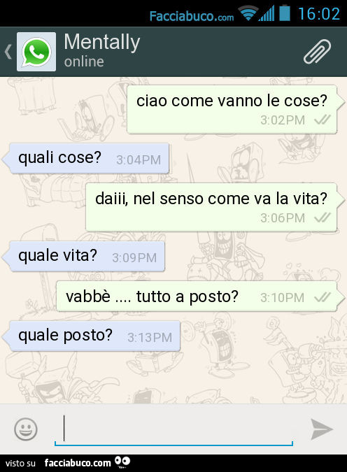 Ciao Come Vanno Le Cose Quali Cose Dai Nel Senso Come Va La Vita Quale Vita Facciabuco Com