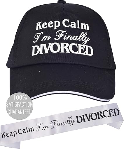 Cappello E Fascia Con Scritta Keep Calm I M Finally Divorced Divorced Happy Divorce Party Supplies Fascia In Raso Nero Di Seta Cappello Da Baseball Abbinato Per Regali E Decorazioni Amazon It Casa E Cucina