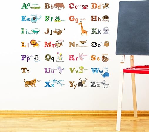 Decowall Dw 1308 Alfabeto Inglese Abc E Animali Medio Adesivi Da Parete Decorazioni Stickers Murali Soggiorno Asilo Nido Camera Letto Per Bambini Decalcomanie Amazon It Fai Da Te