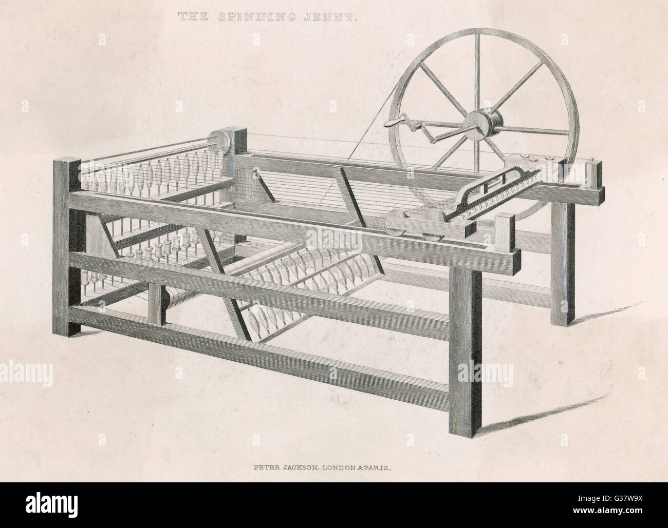 The first solution to this bottleneck appeared around 1765 when James Hargreaves (c, a carpenter by trade, invented his cottonspinning jenny At almost the same time, Richard Arkwright. A significant invention of the Industrial Revolution was the spinning jenny, which was invented by James Hargreaves in 1764 James Hargreaves was an English inventor and is remembered today for inventing the spinning jenny, which was important to the textile industry in England. Jenny was rumored to have been the name of Hargreaves' wife and that he named his invention after her The original spinning jenny used eight spindles instead of the one found on the spinning wheel A single wheel on the spinning jenny controlled eight spindles which created a weave using eight threads spun from a corresponding set of rovings.