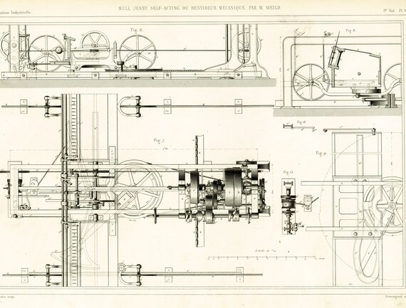 Piani Di 1855 Spinning Mule Jenny Bobina Bobina Tessile Etsy