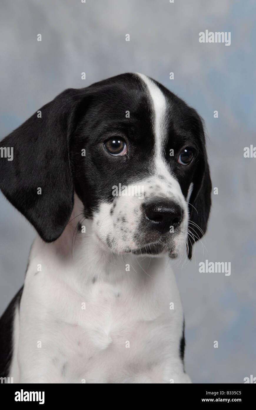 Colpo Alla Testa Del Bianco E Del Nero Pedigree Inglese Cucciolo Di Puntatore Foto Stock Alamy