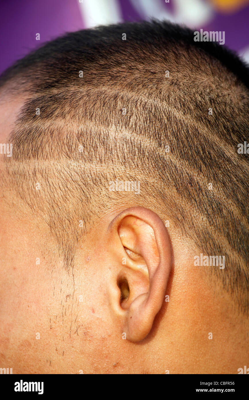 Testa Di Uomo Con Linee Di Chiudere liate I Capelli Rasata Acconciatura A Patong Phuket Tailandia Foto Stock Alamy