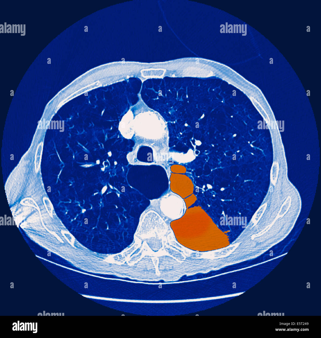 Tomografia Computerizzata Ct Scansione Di Una Sezione Attraverso Il Torace Di Un Paziente Con Un Pneumotorace O Polmone Collassato Arancione Il Foto Stock Alamy