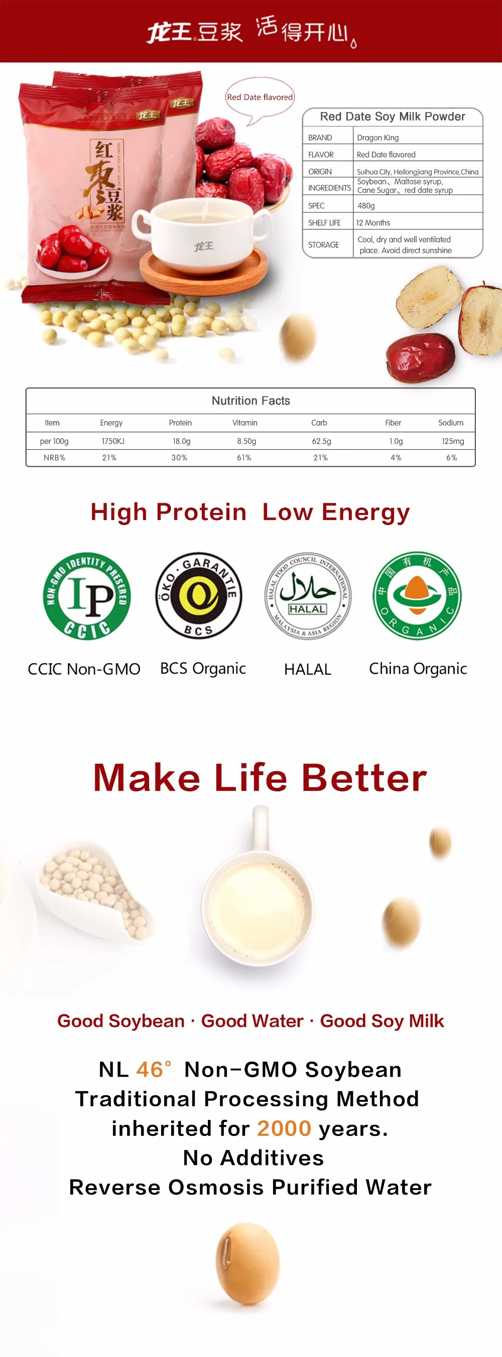 Certified Organic Soy Milk Powder Of Red Date Flavor s View Red Date Soy Milk Dragon Product Details From Heilongjiang Land Reclamation Dragon King Foods Co Ltd On Alibaba Com