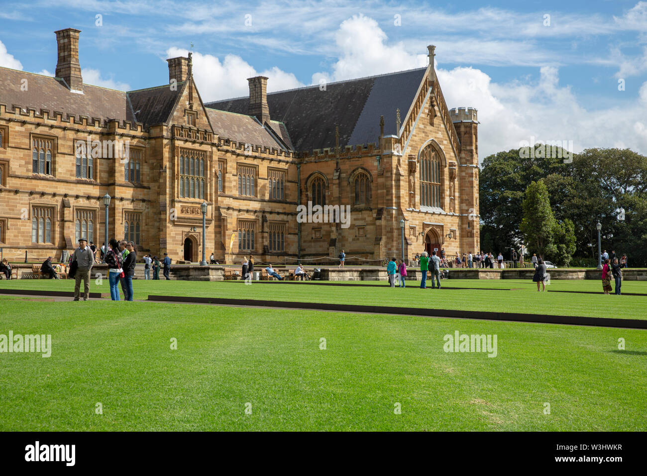 Storico Edificio Principale Dell Universita Di Sydney Da Verde Erba Di Prato Verso La Torre Centrale Ingresso In Stile Gotico Foto Stock Alamy