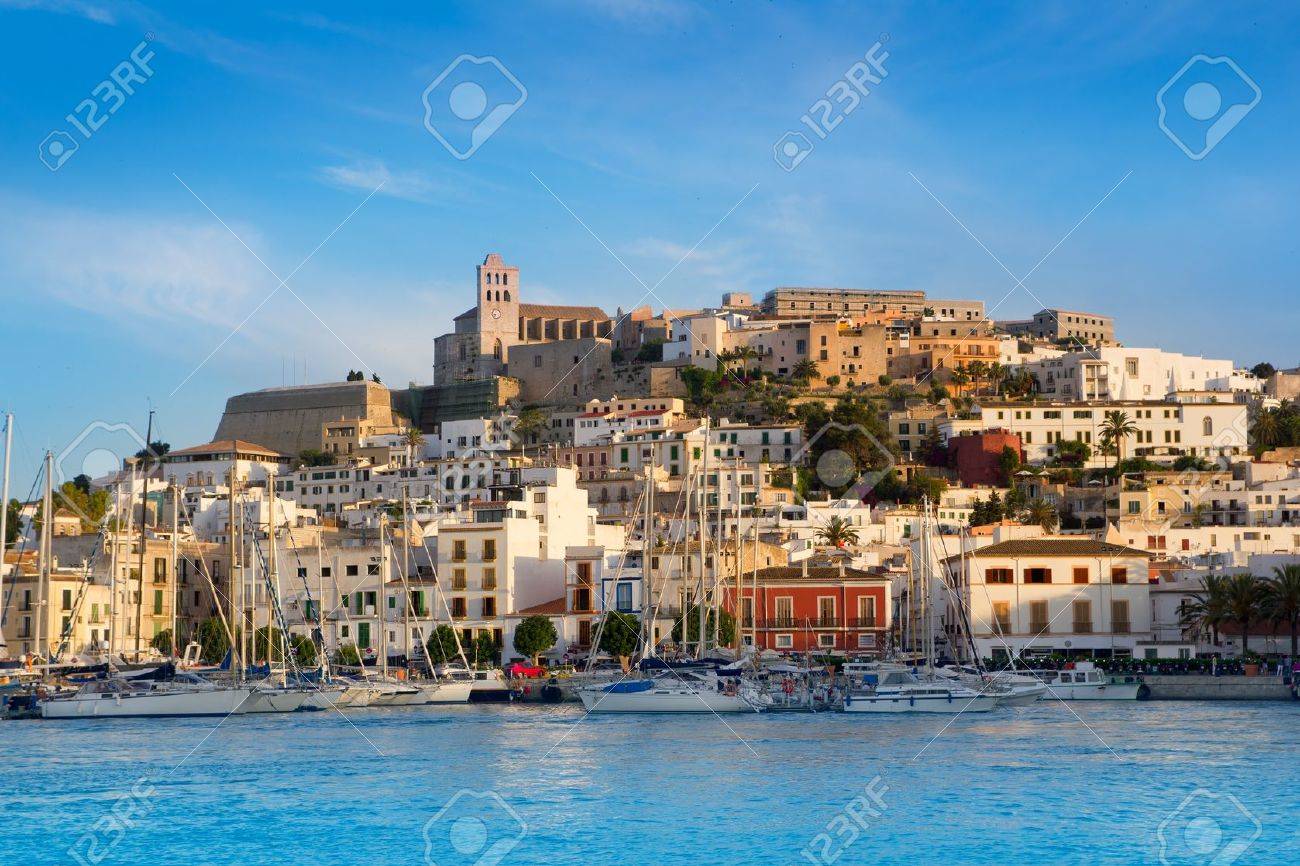 Ibiza Eivissa Ville Avec Vue Sur La Mer Bleue De La Mediterranee La Ville Banque D Images Et Photos Libres De Droits Image