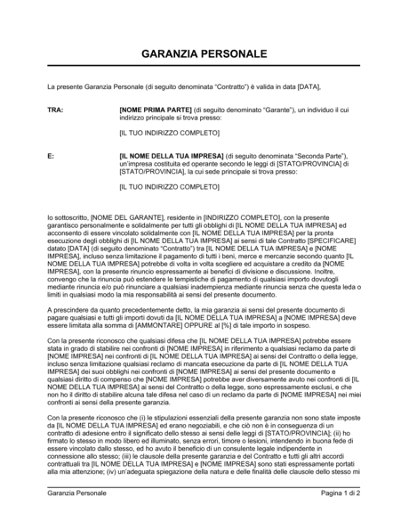 Garanzia Personale Modelli E Esempi Di Moduli Biztree Com