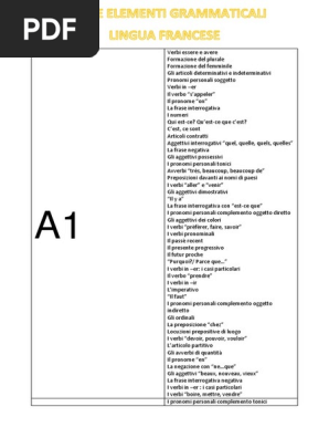 Elenco Argomenti Grammaticali Francesi Divisi Per Livello A1 B1