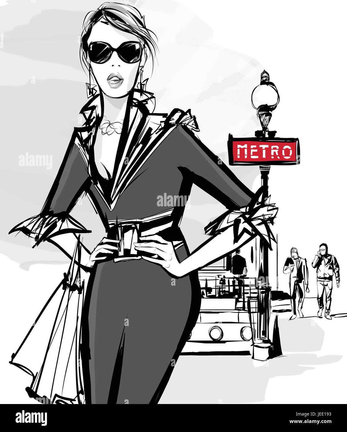 Moda Donna Modello Per Fare Shopping A Parigi Utilizzando La Metropolitana Illustrazione Vettoriale Immagine E Vettoriale Alamy