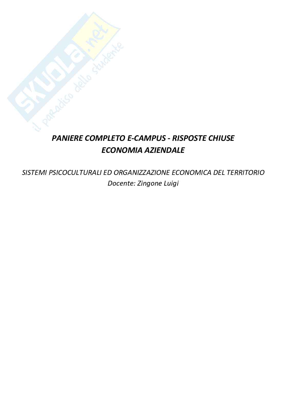 Paniere Completo Economia Aziendale Prof Zingone Master 6 Ecampus Eiform Docsity