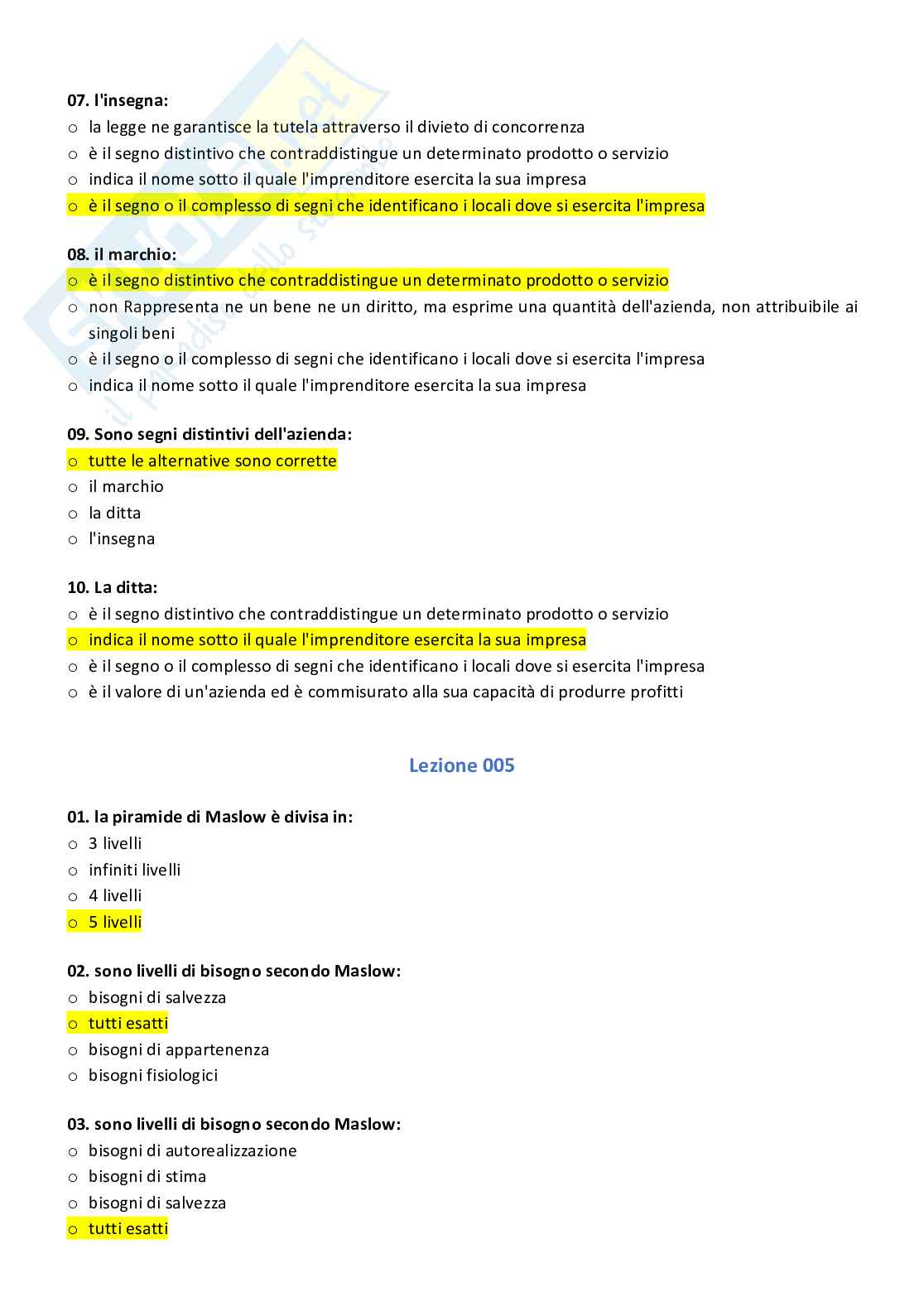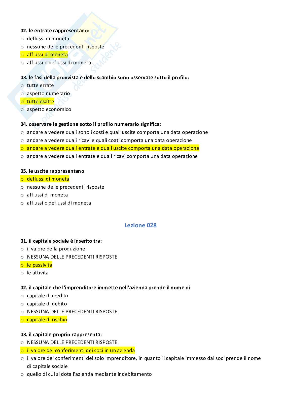 Risposte Paniere Ecampus Master 6 Economia Aziendale Prof Zingone Docsity