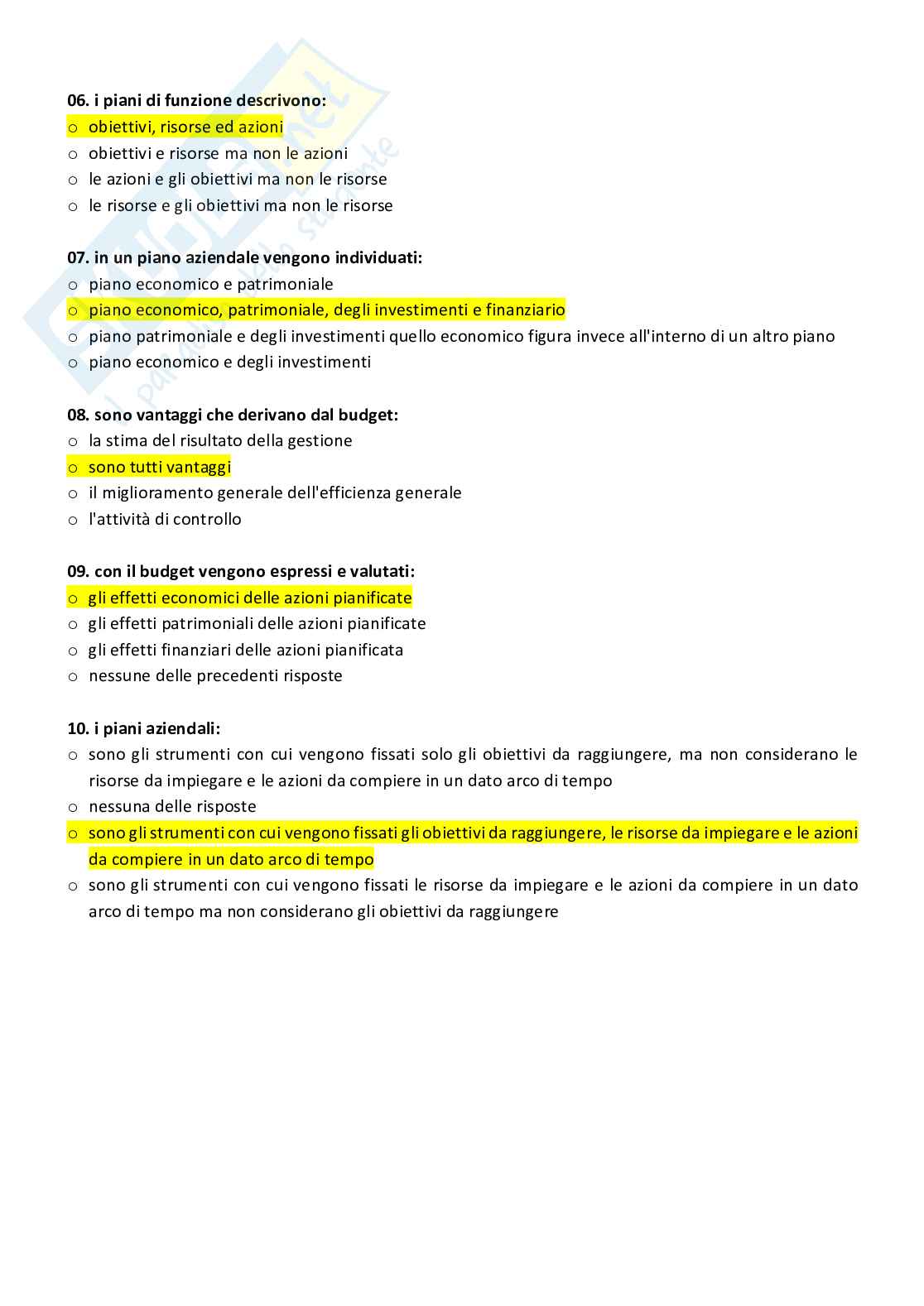 Paniere Con Risposte Chiuse Di Economia Aziendale Per Il Master 6