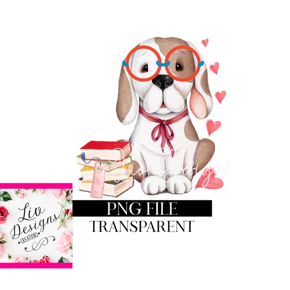 Dog With Glasses And Books Clipart Book Nerd Book Worm Etsy